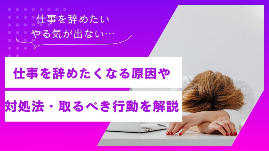「仕事を辞めたい」「やる気が出ない」このような悩みを抱える方は少なくありません。 仕事に対するモチベーションが下がり、辞めたい気持ちが強くなる原因は、職場での人間関係や仕事の適性、会社の雰囲気など様々な要素が関わっています。 この記事では... -